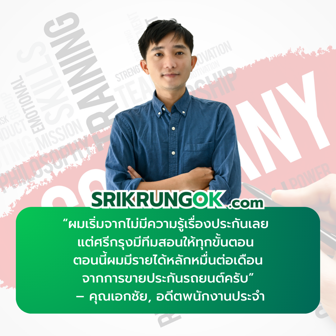 “ผมเริ่มจากไม่มีความรู้เรื่องประกันเลย แต่ศรีกรุงมีทีมสอนให้ทุกขั้นตอน